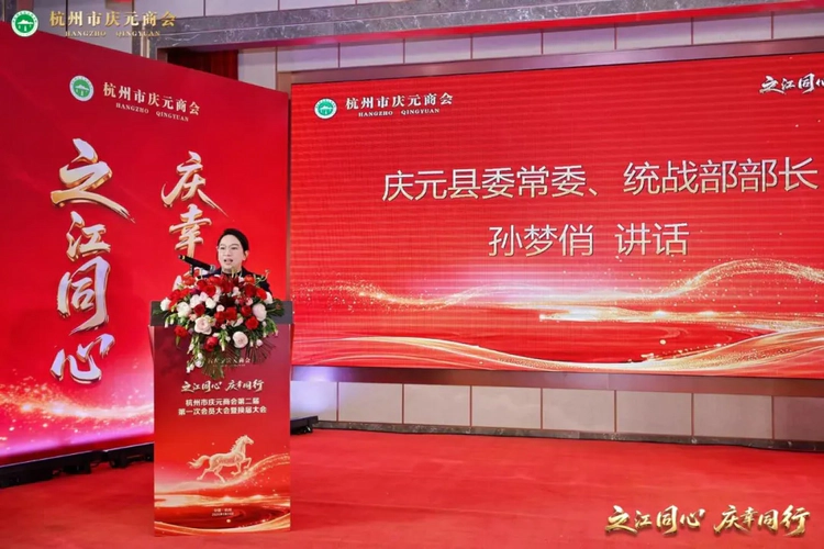 庆元县委常委、统战部部长孙梦俏出席会议并发表讲话。她高度肯定了庆元人向来“敢闯敢拼,肯吃苦,能创业,重团结”的精神特质,强调家乡的发展,离不开每一位庆元人的倾情付出,并提出三点殷切希望:一是希望全体商会会员传承“菇勇者”的锐气,把事业做得更扎实;二是希望商会凝聚“一家亲”的合力,把桥梁搭得更稳;三是希望大家心怀“根与土”的深情,把乡情联得更紧。希望大家多为家乡做宣传推介,诚邀大家常回家看看,更欢迎大家带着优质项目、富贵经验回归兴业,共绘家乡发展新蓝图。