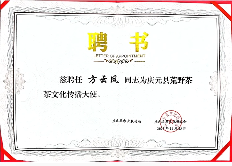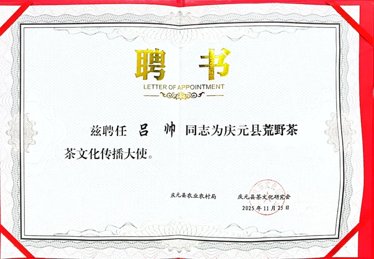 聘请三位传播大使,既是对他们过往传播工作的高度认可,也标志着庆元荒野茶品牌宣传迈入专业化、系统化新阶段。随着传播合作的持续深化,庆元荒野茶正从区域特色特产向全国性知名品牌稳步迈进,其成功实践也为各地特色产业借助专业传播力量助力乡村振兴提供了宝贵借鉴。