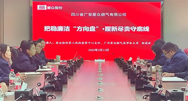 本网四川讯(特邀记者 李顺华 通讯员 余亮、黄越 )春启新程,廉韵先行。为深入贯彻全面从严治党要求和股份公司“三重一防一守”工作部署,打好双重“组合拳”,在“防”上做文章、“守”上下功夫,向“四新”人员划红线、明底线、传压力,持续注入清廉动能。2026年3月,广安爱众燃气针对2025年9月以来“新入职、新转岗、新提拔、新发展党员”人员,组织召开廉洁警示教育专题会,上好履新尽责“第一课”,激励大家在新的一年策马扬鞭、勇毅前行。会议由爱众股份第三控监督中心主任、广安爱众燃气监事会主席主持,相关部门及基层站所共计40余人参加会议。