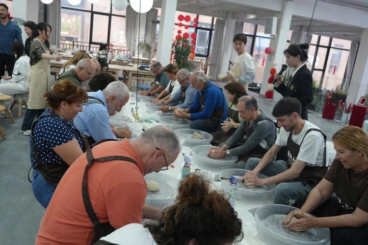 在为期三天的访问中,代表团还先后参观了三宝景区、陶溪川文创街区、昌南里世界潮玩小镇以及陶阳里文化街区,亲身感受了景德镇传统与现代交织的独特魅力。外宾们还体验了非遗陶瓷手作,每个人都亲手制作了一件陶瓷作品,对景德镇千年制瓷技艺有了切身体会。此外,代表团还品尝了地道的江西菜,对中华美食文化赞不绝口。他们表示,此行让他们全方位、多角度地了解了中国的文化与发展。
